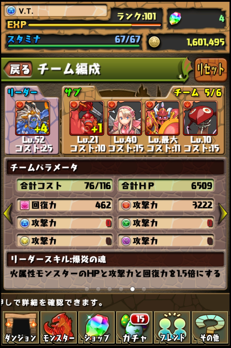 ポイントは破壊神・シヴァの火属性のHPと回復力を1.5倍にするリーダースキル。