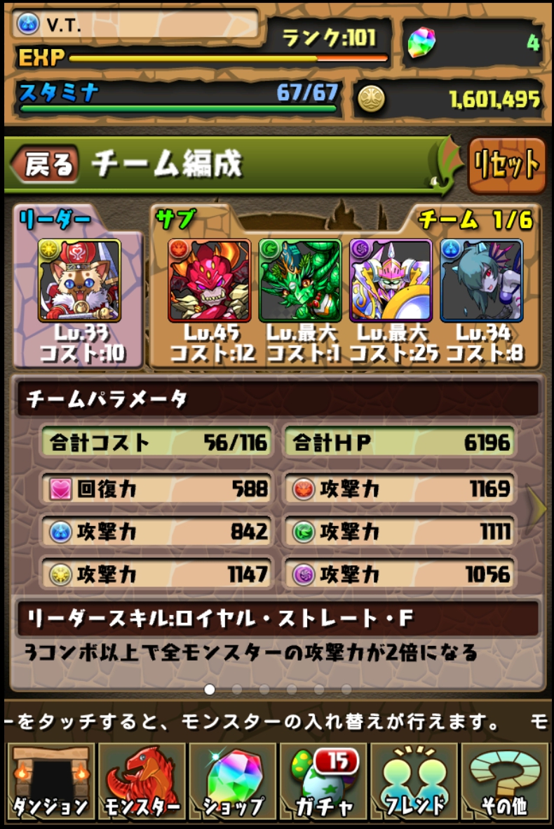 リーダーはKOBレオンハート。3コンボ以上で攻撃力が2倍になりますので尚お得。