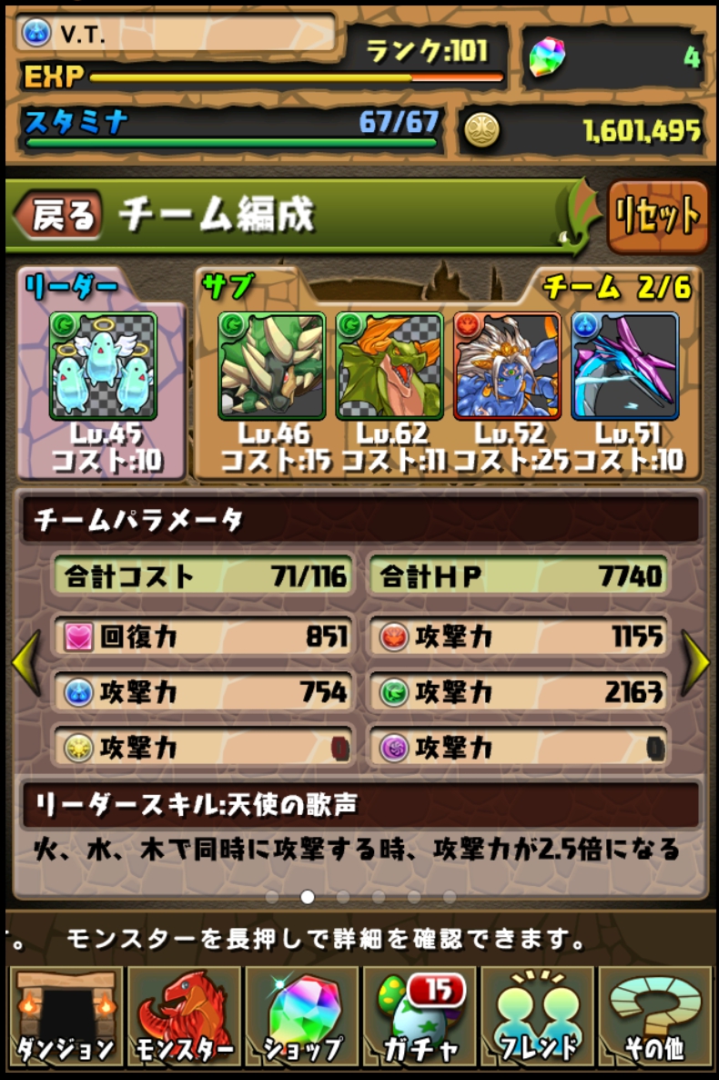 闇光無しダンジョンと相性の良い、ザ・ゼリーエンジェルズをリーダーにしたパーティー。