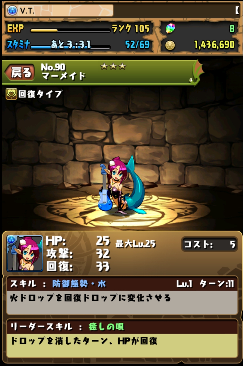 進化させることで、回復大のリーダースキルのモンスター、大海の歌姫セイレーンに育ちます。