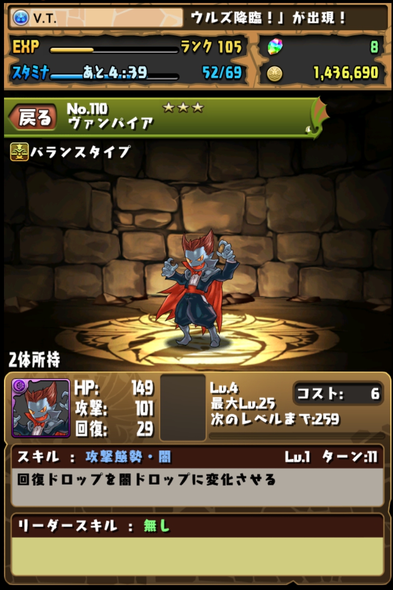 パズドラ 「魔王の城」をヴァンパイアがドロップするまでやってみる