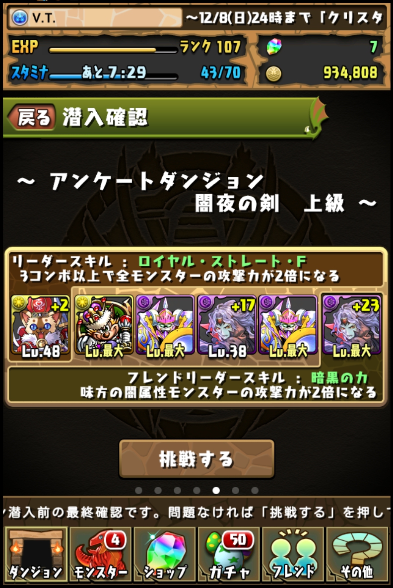 アンケートダンジョン 闇夜の剣 上級 攻略日記