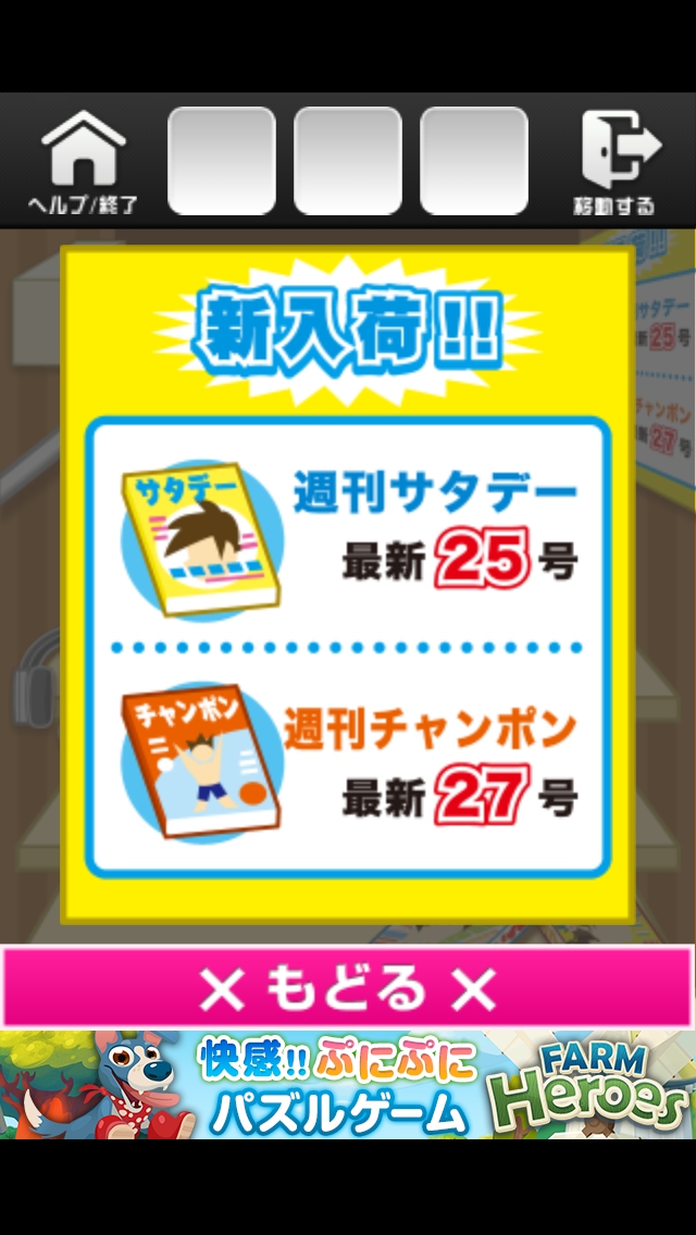 ステージ16~20 脱出ゲーム「まんが喫茶」