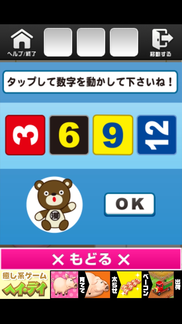 3→右のクマ→左 6→下のクマ→上 9→左のクマ→上 12→上のクマ→左