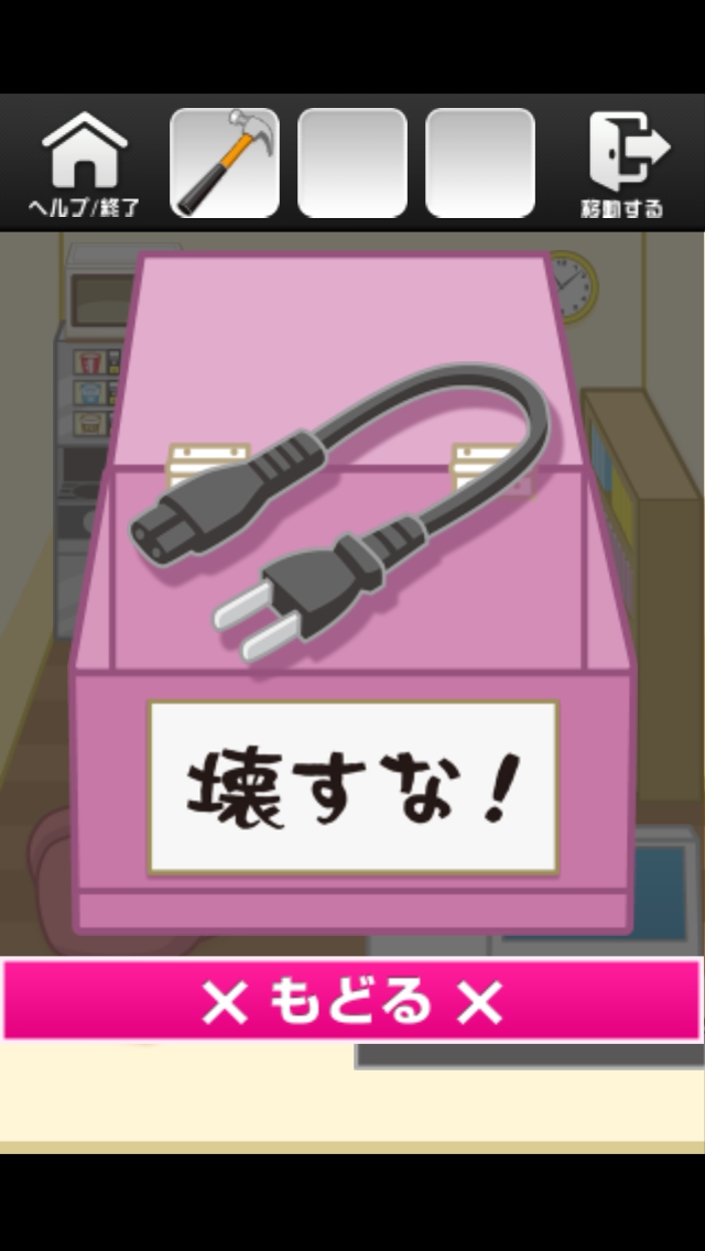 部屋中央にあるテーブルの上のピンクの箱をタップします。