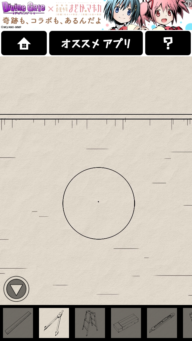 コンパスを選択して穴をタップすると