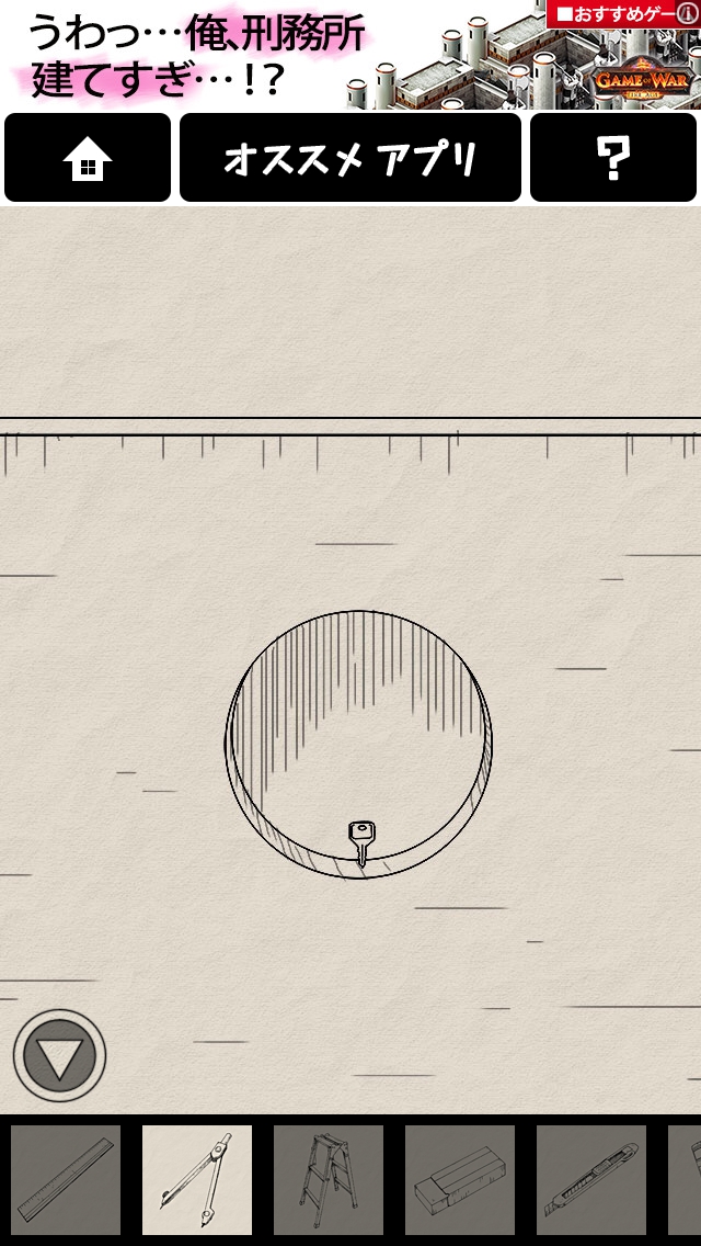円をタップしてどけ、中の鍵を取ります。