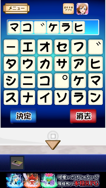 「マゴケラヒ」とパネルに入力して