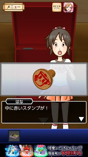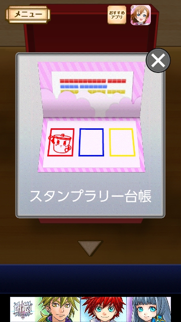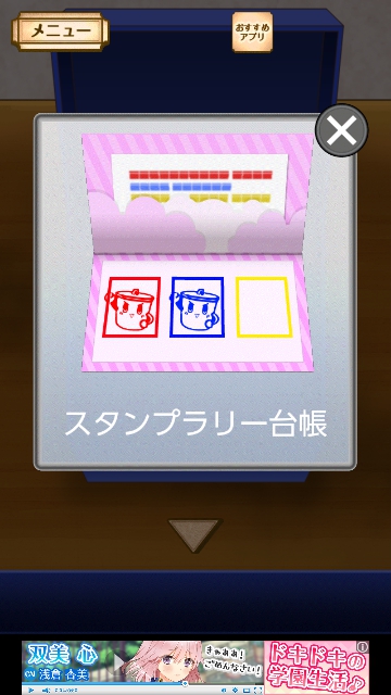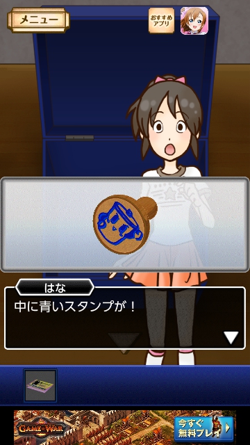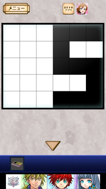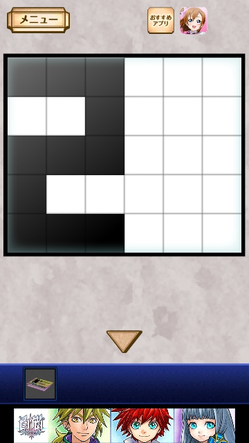 謎解き名探偵ビリー 宿敵 攻略 月曜日|脱出ゲーム攻略 |Page2 脱出ゲーム 更新日時:2015年7月22日 12:16 PM ページタイトルとURLをコピーする 開きます。中をタップすると はなが赤のスタンプを 台帳に押します。 次に青です。 箱の後ろに マス目があります。 青のヒントは「25」でしたので タップして 2と・・・ 5になるように色を変えます。 この図形に変えると(一番下は全部、黒) 青い箱から音がして 開きます。中をタップすると はながスタンプを 台帳に押します。 ページ: 1 2 3 4 5 前ページへ 次ページへ SQOOLのYouTubeチャンネル スポンサーリンク