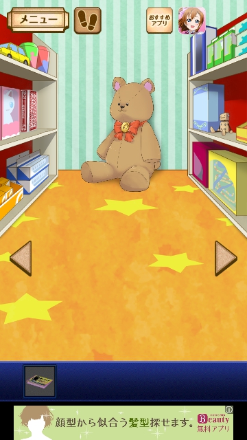 謎解き名探偵ビリー 宿敵 攻略 火曜日|脱出ゲーム攻略 |Page3 脱出ゲーム 更新日時:2015年7月22日 12:16 PM ページタイトルとURLをコピーする 3回ほど 「はずれ」を引きます。 はなの「もっと運気をあげたら」の言葉 を聞きます。 奥を調べます。 右の真ん中の棚に 「ロボットのおもちゃ」があるので 手に入れます。 正面の熊を調べると 裏に ファスナーがあるので、開けて 「まるいつみき」を手に入れます。 左のトランプの模様の赤い箱から 「地図?」を手に入れます。 これは自動販売機を示しています。 ページ: 1 2 3 4 5 6 7 前ページへ 次ページへ SQOOLのYouTubeチャンネル スポンサーリンク