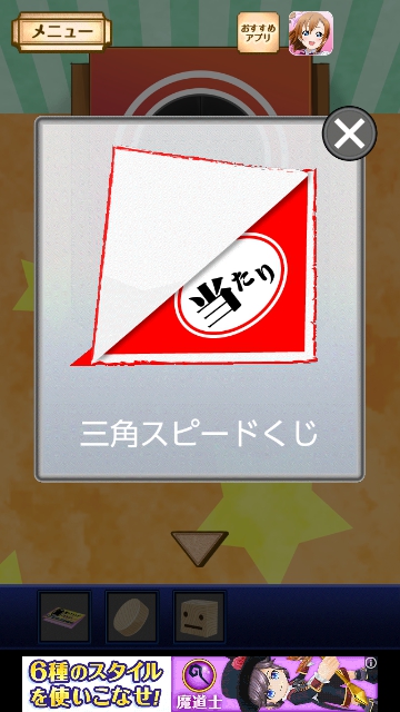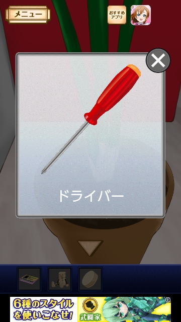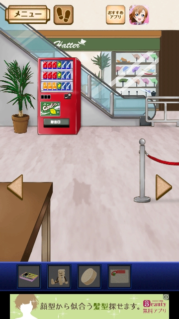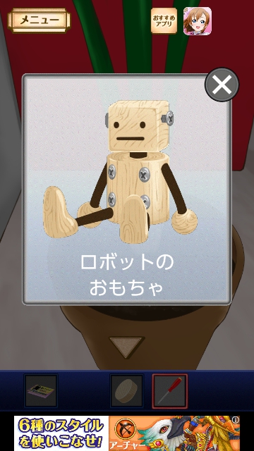 謎解き名探偵ビリー 宿敵 攻略 火曜日|脱出ゲーム攻略 |Page4 脱出ゲーム 更新日時:2015年7月22日 12:16 PM ページタイトルとURLをコピーする イベント会場に戻り 自動販売機の横の植物を調べると ドライバーがあるので 手に入れて ロボットのおもちゃのネジを外すと 「ロボットのアタマ」が手に入ります。 自動販売機のボタンを押すと 当たりが出ます。 これがヒントの「幸運」です。 また移動して おもちゃ屋に行き くじを引くと 当たりです。 ページ: 1 2 3 4 5 6 7 前ページへ 次ページへ SQOOLのYouTubeチャンネル スポンサーリンク