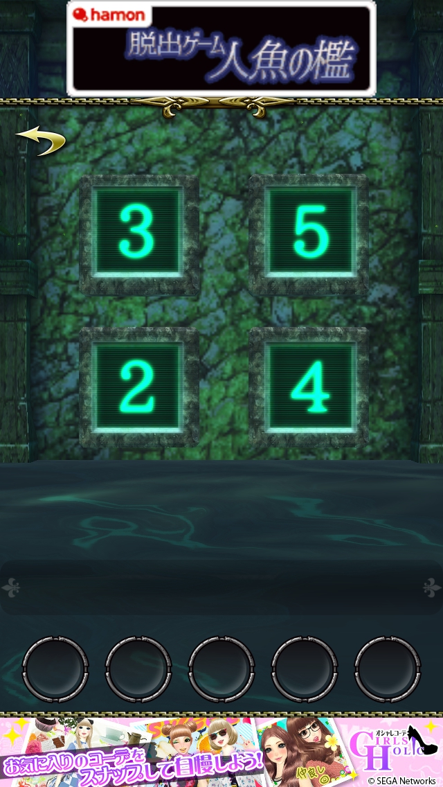 人魚の檻2 攻略 ステージ6~10|脱出ゲーム攻略 |Page3 脱出ゲーム 更新日時:2015年7月22日 12:13 PM ページタイトルとURLをコピーする ステージ8 扉から左回りに移動します。 氷の女性像があるのでタップします。 砕けるので破片の数を覚えます。4つ。 今度は男性像をタップします。 破片5つ。 2体目の男性像をタップします。 破片3つ。 2体目女性像をタップします。 破片2つ。 扉の向い装置に破片の数を入力します。 上 3 5 下 2 4 扉に石が現れます。 扉をタップして脱出しましょう。 脱出ゲーム 人魚の檻2 攻略記事一覧 ステージ6 ステージ7 ステージ8 ステージ9 ステージ10 ページ: 1 2 3 4 5 前ページへ 次ページへ SQOOLのYouTubeチャンネル スポンサーリンク