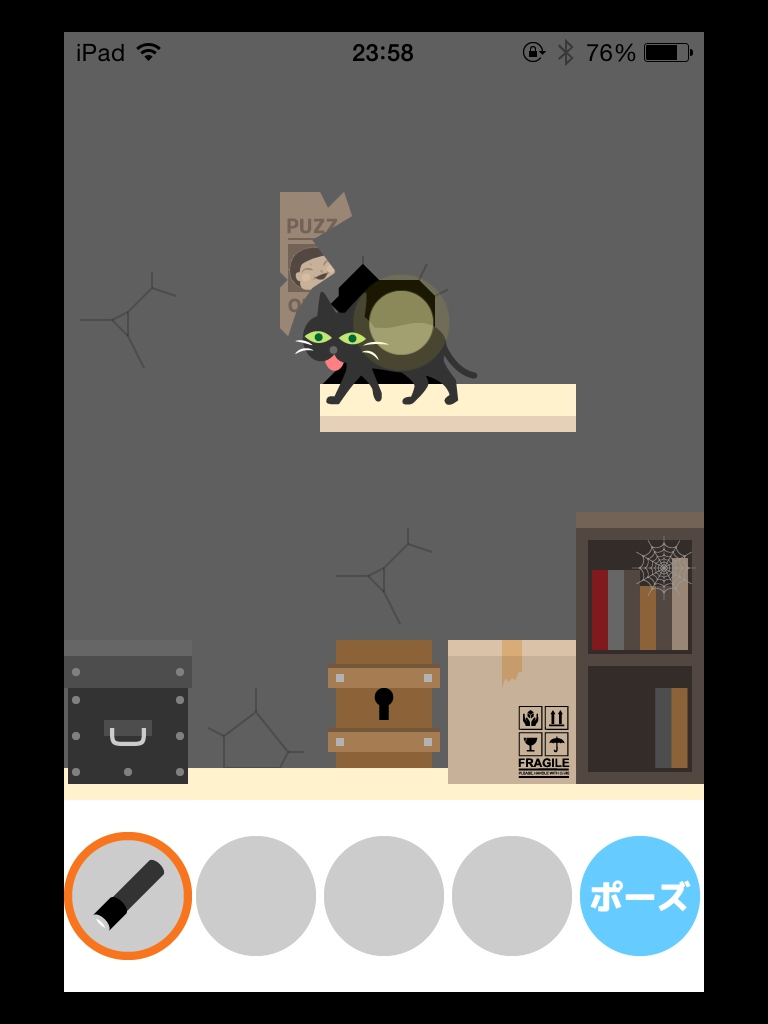 ネコ脱出 23.ボロの部屋 脱出ゲーム 更新日時:2016年3月2日 6:52 AM ページタイトルとURLをコピーする ネコ脱出 23.ボロの部屋 ボロボロの部屋です。 ネズミでも出て来そうな・・・? 段ボールを取って、そこの壁を何度かタップすると穴が開きます。 しばらく待つとネズミが出てきて 猫が降りて来ます。 箱から懐中電灯を取り出します。 懐中電灯は猫じゃらしと同じように使えます。 段ボールを元に戻して、猫を段ボールの上に誘導します。 上の新聞紙の近くまで猫を連れて行ったら、新聞紙の上あたりを懐中電灯で照らすとびりびり破いて 出口が出て来ます。 ネコ脱出 攻略記事一覧 SQOOLのYouTubeチャンネル スポンサーリンク