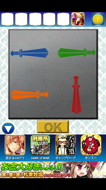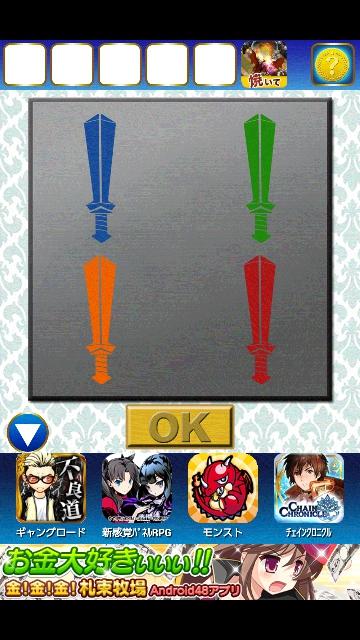 右の剣の絵に4色の色が現れました。