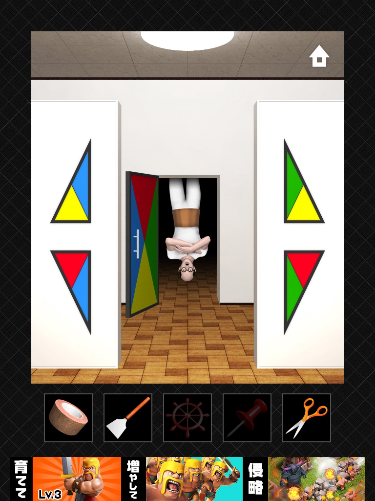 端末の上下をさかさまにするとオヤジがいなくなるのでその隙にドアを開けます。
