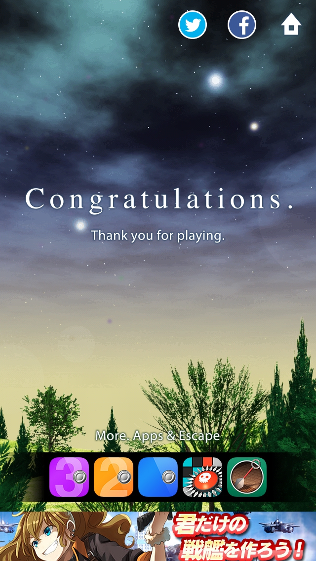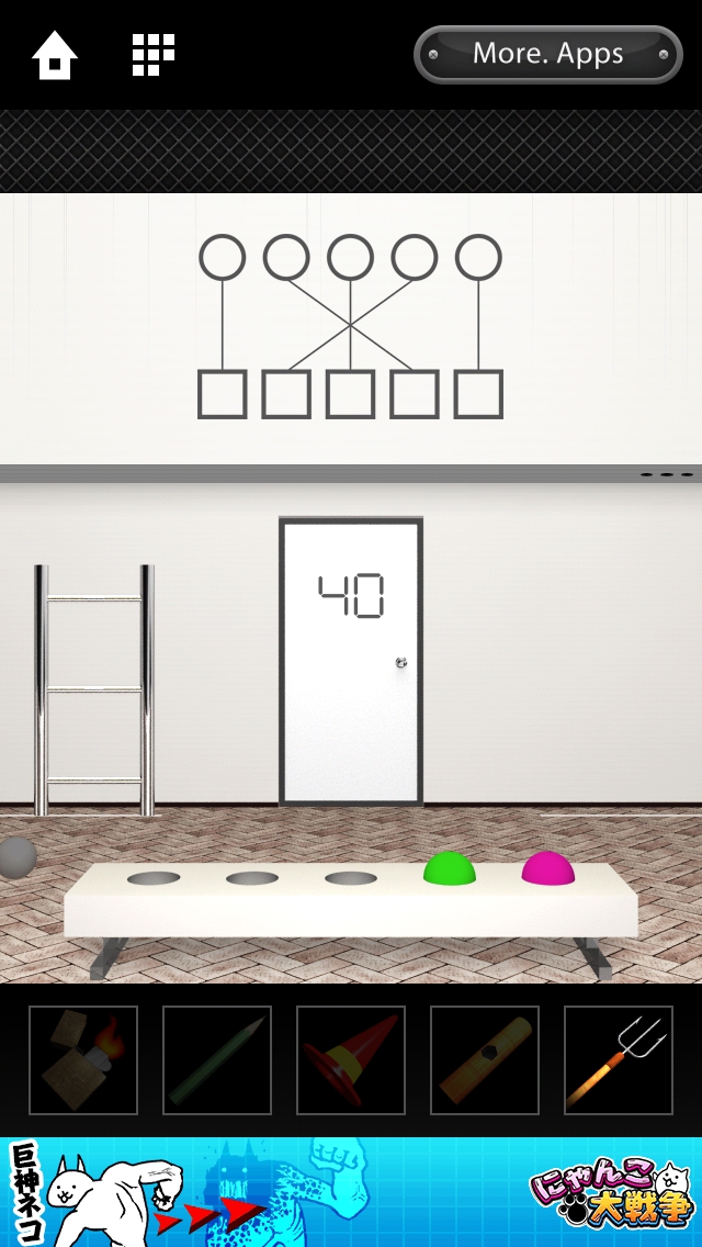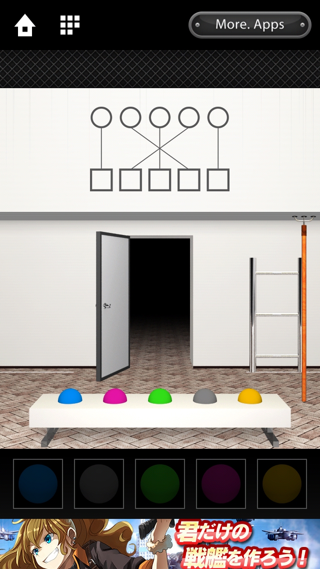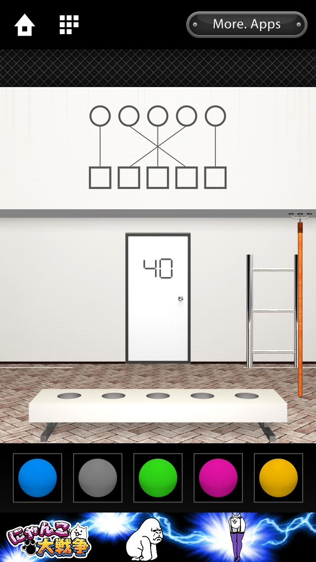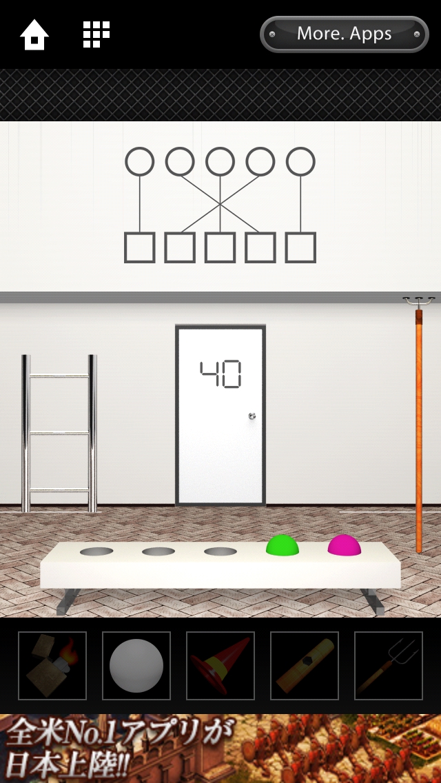 DOOORS4 攻略 ステージ36~40|脱出ゲーム攻略 |Page5 脱出ゲーム 更新日時:2015年7月23日 1:53 AM ページタイトルとURLをコピーする ステージ40 左下の黒のボールを取ります。 右の3つの穴に槍を差します。 槍を上にスワイプします。 まず青のボールを取ります。 端末を左に傾けると右側にハシゴが出て くるので黄色のボールを取ります。 緑とピンクのボールも取ります。 ドアの上の図の通りにボールを置きます。 丸は置く場所 四角はアイテム欄のことです。 ドアが開きます。脱出しましょう。 オールクリアです!!お疲れ様でした。 ステージ36 ステージ37 ステージ38 ステージ39 ステージ40 脱出ゲーム DOORS4 攻略記事一覧 ページ: 1 2 3 4 5 前ページへ SQOOLのYouTubeチャンネル スポンサーリンク