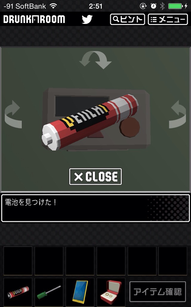 電池が上にあるのでまずは電池をGET!
