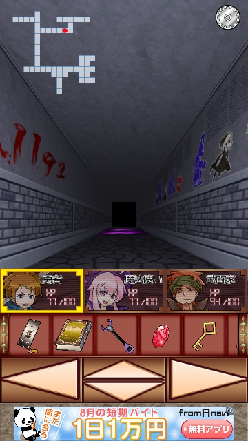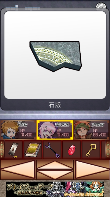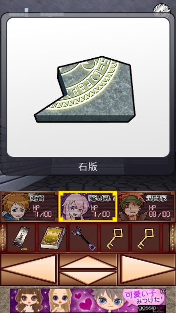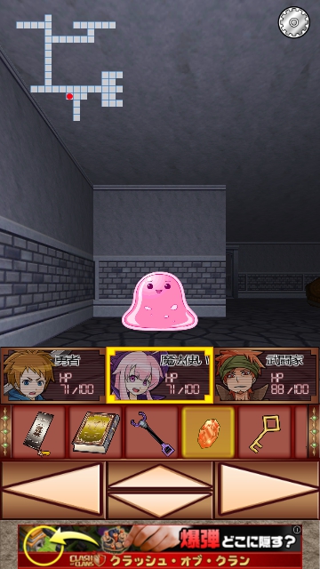 魔王城からの脱出 救出編 攻略 その3 |Page3 脱出ゲーム 更新日時:2015年7月23日 1:53 AM ページタイトルとURLをコピーする 突き当り(鉄格子のあった場所)を 左に直進して 最初に魔法使い「シェアリカ」のいた部屋に行きます。 部屋に入って左にパネルがあるので 毒の通路に書いてあった 1192 と入力して決定すると 石版が手に入ります。 部屋を大広間に向かって直進すると ピンクのスライムがいるので 誰でもよいので「宝石」を渡します。 すると 石版をくれます。 その4に続きます。 魔王城からの脱出 救出編 攻略記事一覧 ページ: 1 2 3 前ページへ SQOOLのYouTubeチャンネル スポンサーリンク