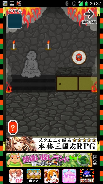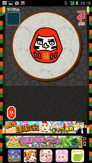 最初の画面です。ダルマの絵があります。タップで拡大。