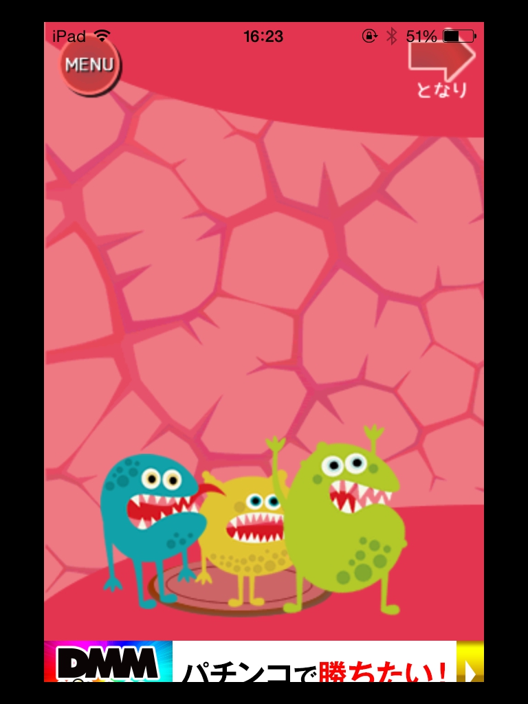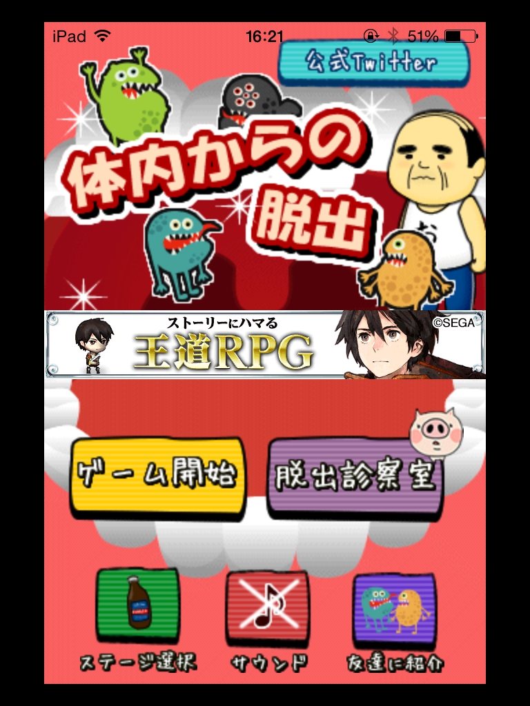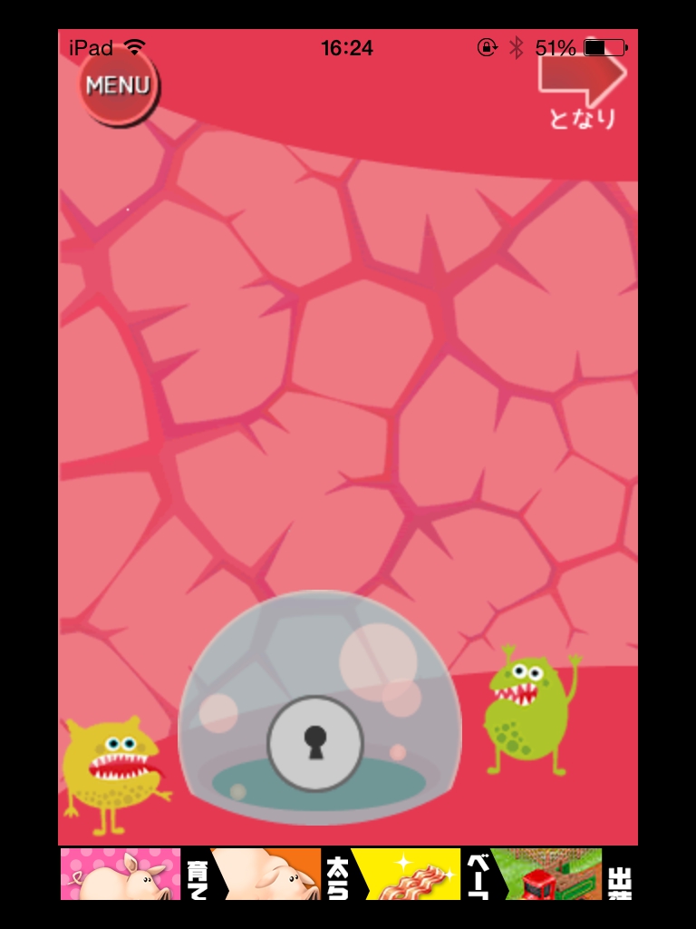 体内からの脱出ゲーム(おっさんシリーズ) 攻略 STAGE1~5 脱出ゲーム 更新日時:2015年7月23日 2:01 AM ページタイトルとURLをコピーする 体内からの脱出 STAGE1~5 攻略チャート STAGE1~5です。 ウイルスを倒しながら?助けてもらいながら?出口へ向かいましょう。 STAGE1 右の部屋へ移動します。 ウイルスが3体いますのでタップして排除します。 蓋をタップして開けましょう。 穴をタップしてクリアです。 STAGE2 箱を開けましょう。 中からカギを取り出します。 カギ穴をタップして 脱出します。 STAGE3 右の部屋へ移動します。 コーンを右にスワイプしてどかします。 ページ: 1 2 次ページへ SQOOLのYouTubeチャンネル スポンサーリンク