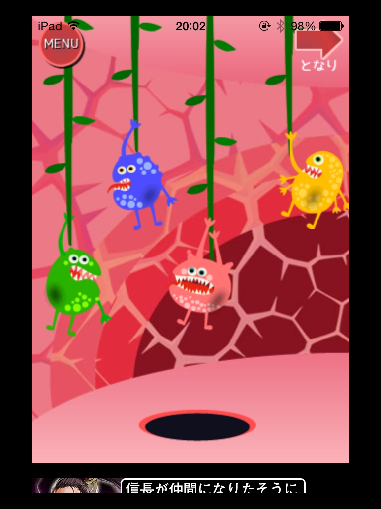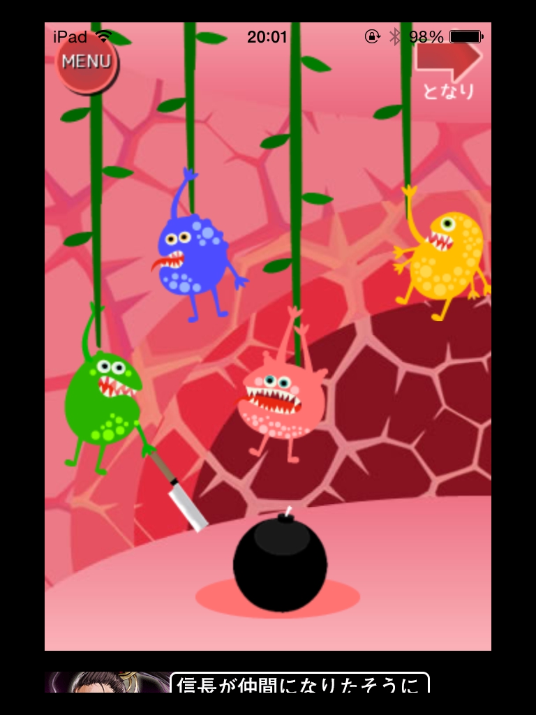緑のウイルスが包丁を持ってきますので、タップして取りましょう。