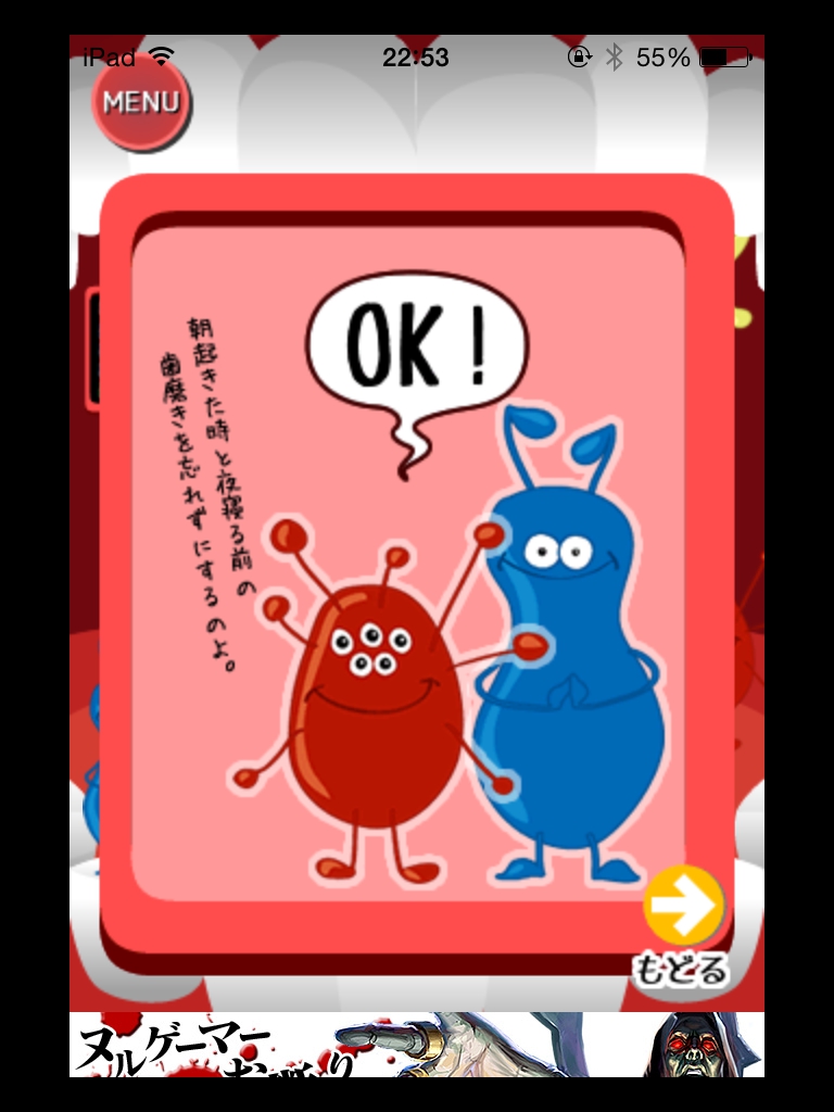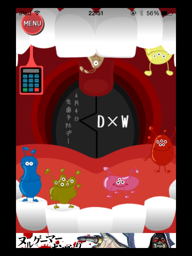 虫歯菌をタップするとDかWの吹き出しが出ます。