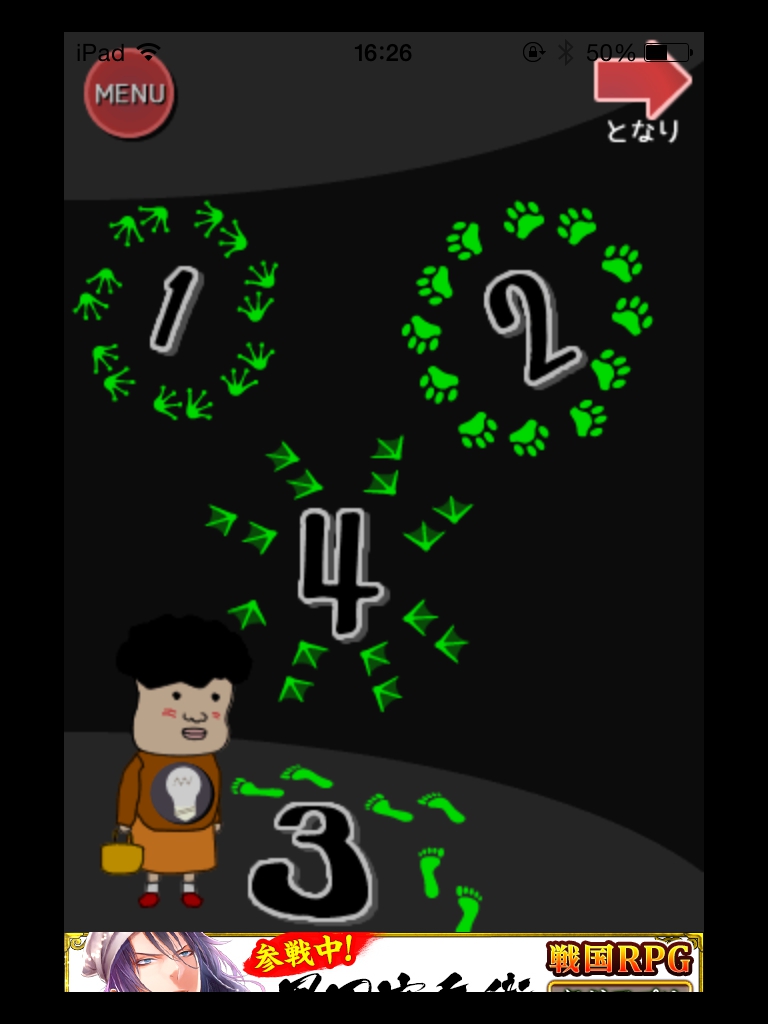 前の部屋の数字の周りの数字と足跡の動物(人間)を合わせたわけですね。