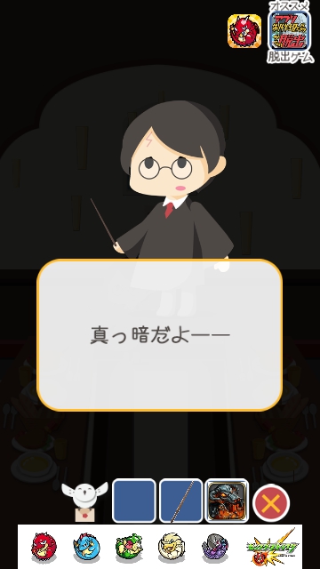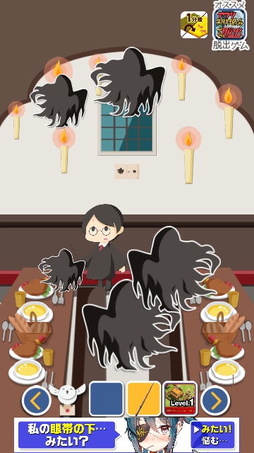 黒いオバケがいっぱいいます。メガネの男の子に触ってみます。