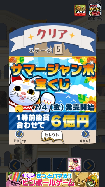 ステージ5 の脱出成功です!「►」で次のステージ6に進みます。