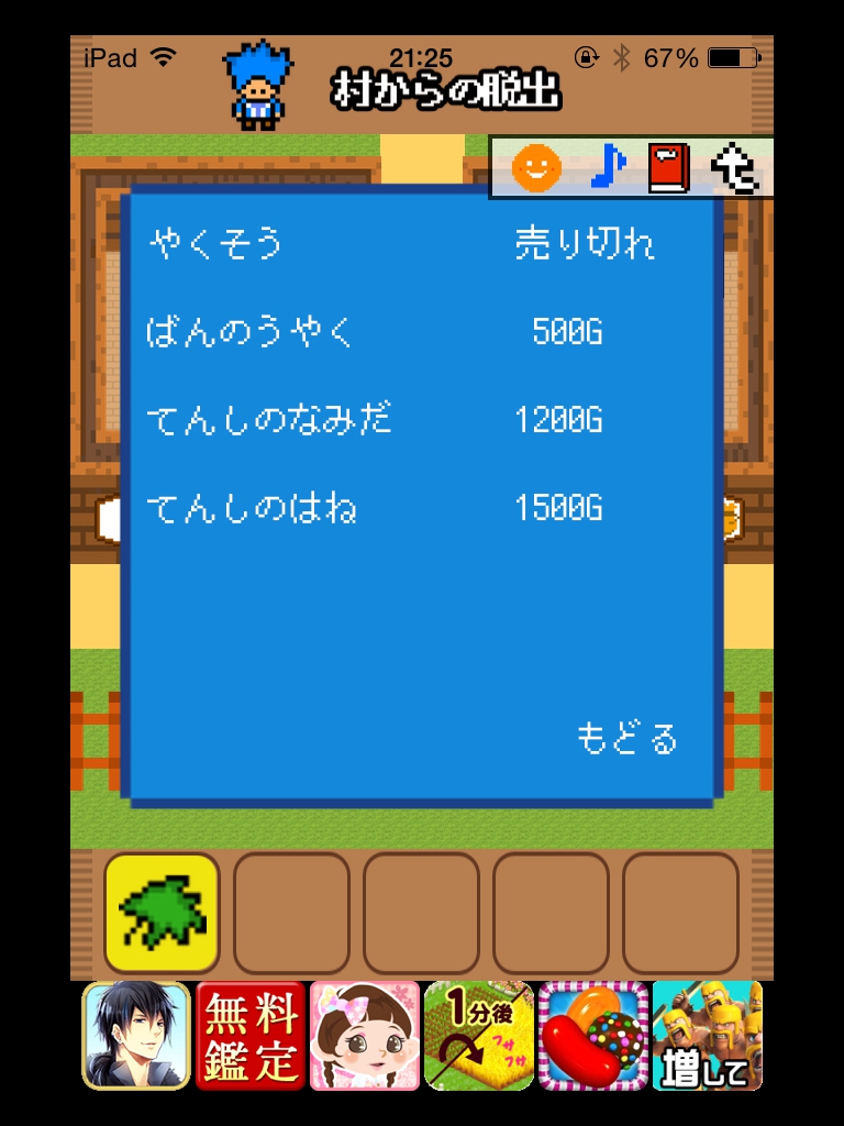 画面の左下の光っている地面をタップして薬草を手に入れます。