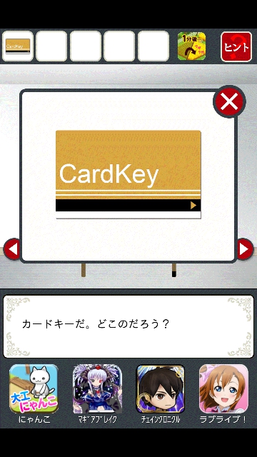 「カードキー」を使って、たんすの左側の扉をタップ。