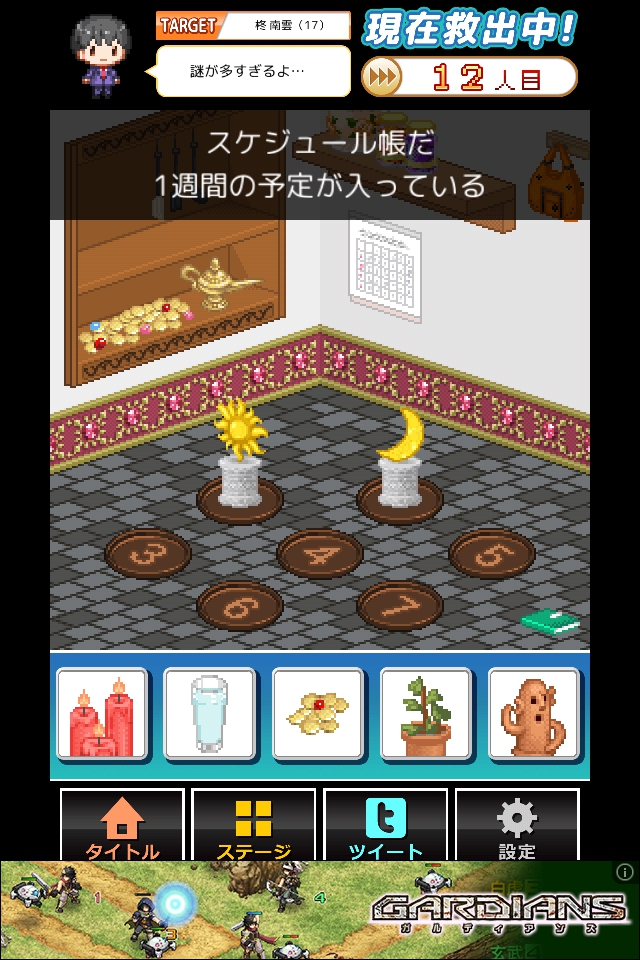 右上のバッグをタップし、スケジュール帳を調べてヒントを得る。