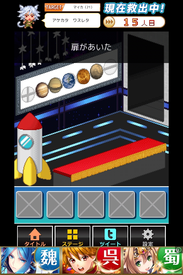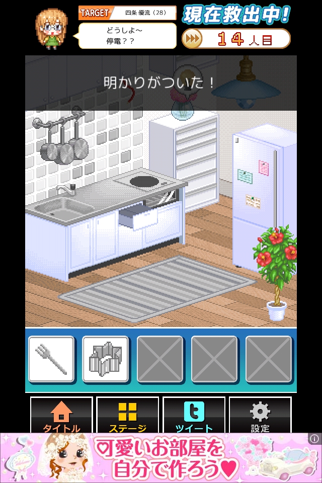 明かりが点いたので、電球マークをタップして脱出する。