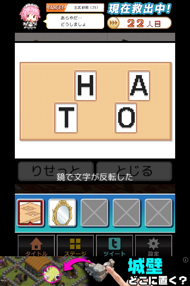 穴の開いた板を装備し、文字に重ねると「HATO」という字が出てくる。
