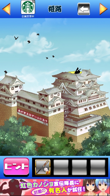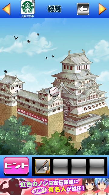GTG48 関西編 兵庫県 攻略|脱出ゲーム攻略 |Page2 脱出ゲーム 更新日時:2015年7月23日 1:53 AM ページタイトルとURLをコピーする 「135」と入力します。明石の東経です。 さらに調べると、中央から・・・ 2個目の黒いカケラです。 このまましばらく放置します。 夜景に変わり、流れ星が流れます。 その先の左下に・・・ 3個目の黒いカケラです。 お城です。 画面をタップしてボールを上げて、打ちます。 お城が壊れて、中から4個目の黒いカケラが出てきます。 救出成功です。 GTG48 関西編 攻略記事一覧 ページ: 1 2 前ページへ SQOOLのYouTubeチャンネル スポンサーリンク