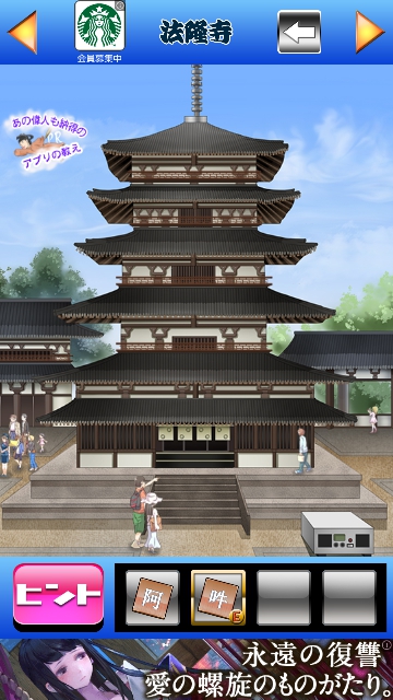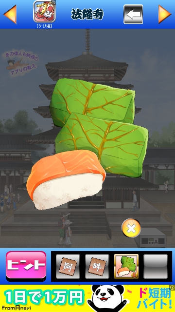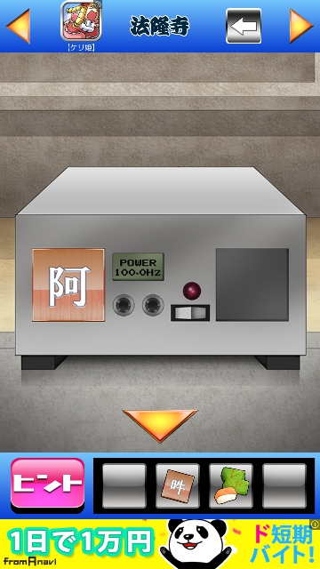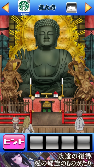GTG48 関西編 奈良県 攻略|脱出ゲーム攻略 脱出ゲーム 更新日時:2015年7月23日 1:53 AM ページタイトルとURLをコピーする GTG48 関西編 奈良県 GTG48 関西編 攻略記事一覧 左側の仏像を調べます。 パネルを取ります。 右の仏像も調べてパネルを取ります。 塔の真ん中の扉を調べます。 扉が開いて・・・ お寿司が出ました。 塔の右下にスピーカーがあります。 パネルを当てはめます。 2枚はめると地震が起きます。 すると、塔の入り口に・・・ 1個目の黒いカケラです。 ページ: 1 2 3 次ページへ SQOOLのYouTubeチャンネル スポンサーリンク