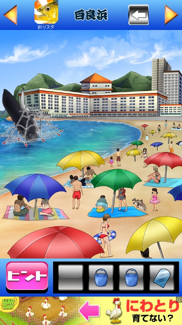 「くえ」です。海岸右奥の低い建物を調べます。
