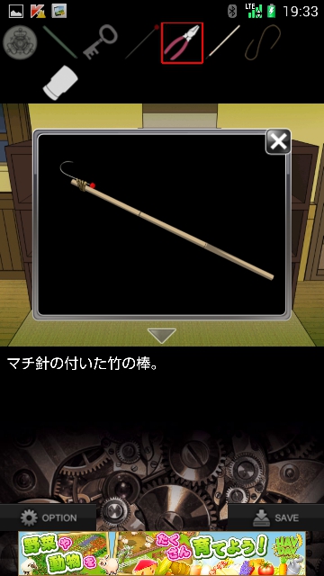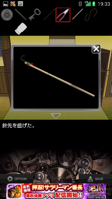 虚像の愛 攻略 その2|脱出ゲーム攻略 |Page2 脱出ゲーム 更新日時:2015年7月22日 12:16 PM ページタイトルとURLをコピーする 脱衣カゴの下段を調べると ヒビがあるので ストローを使って 糸を手に入れます。 アイテムの竹の棒に マチ針を合体させて 糸で固定します。 さらにペンチを針先に使って 針を曲げると マチ針のついた竹の棒の完成です。 テーブルに移動すると 赤い風船があるので マチ針のついた竹の棒で割ります。 すると 何かが落ちてきます。 ページ: 1 2 3 4 前ページへ 次ページへ SQOOLのYouTubeチャンネル スポンサーリンク