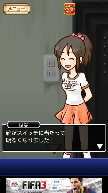 「ビリーのくつ」を使って、ドア横のスイッチをタップします。
