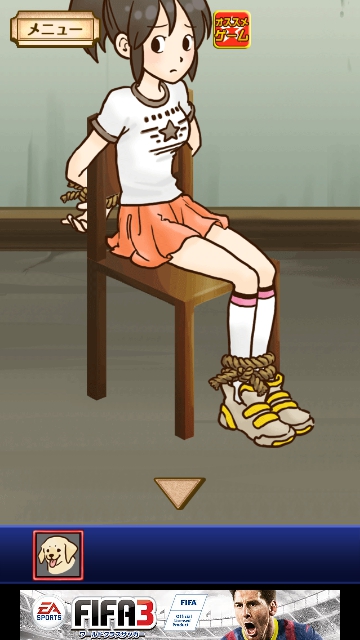 「子犬」を使って、はなの足のヒモをタップします。