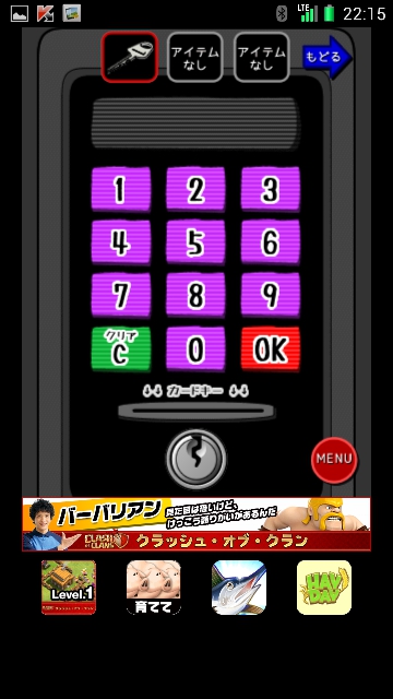 カギを出口横のパネルで使います。
