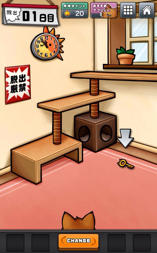にゃんこ脱出大作戦 1日目 攻略 脱出ゲーム 更新日時:2015年7月23日 1:57 AM ページタイトルとURLをコピーする にゃんこ脱出大作戦 1日目 1日目は矢印でナビしてくれるから矢印にそってやってみよう これで脱出成功 にゃんこ脱出大作戦 攻略記事一覧 SQOOLのYouTubeチャンネル スポンサーリンク