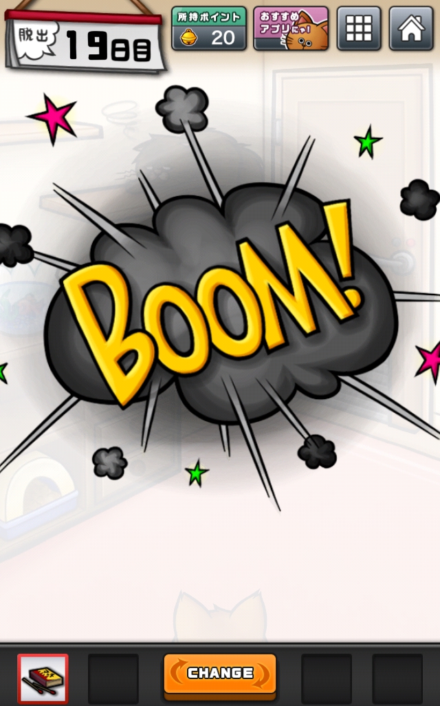 にゃんこ脱出大作戦 19日目 攻略 脱出ゲーム 更新日時:2015年7月23日 1:57 AM ページタイトルとURLをコピーする にゃんこ脱出大作戦 19日目 後ろにまわってマッチをgetしよう 反対に戻って左上にある導火線を下まで引っ張ろう 導火線にマッチで火をつけよう 左にある上のボタンを押しシャッターをあける にゃんこ脱出大作戦 攻略記事一覧 SQOOLのYouTubeチャンネル スポンサーリンク