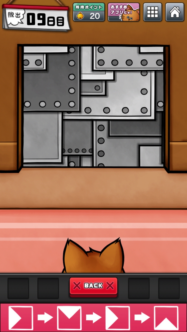 にゃんこ脱出大作戦 9日目 攻略 脱出ゲーム 更新日時:2015年7月23日 1:57 AM ページタイトルとURLをコピーする にゃんこ脱出大作戦 9日目 広告のバナーがヒントになってるのでクリックしてみるとヒントが出てくるぞ ヒントの通りに扉をスライドさせていこう にゃんこ脱出大作戦 攻略記事一覧 SQOOLのYouTubeチャンネル スポンサーリンク