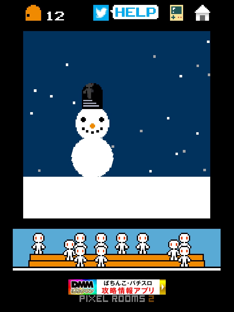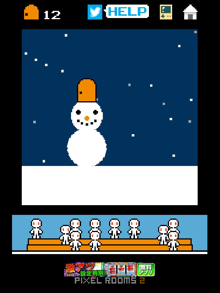 ピクセルルーム2 攻略 ROOM12|脱出ゲーム攻略 脱出ゲーム 更新日時:2015年7月23日 1:57 AM ページタイトルとURLをコピーする iOS版ダウンロード Android版ダウンロード 脱出ゲーム ピクセルルーム2 ROOM12 攻略 雪だまを左右の画面端に当たらないように転がします。 雪玉が大きくなります。 大きくなると勝手に雪だるまになって扉が降ってきます。 ピクセルルーム2 攻略記事一覧 SQOOLのYouTubeチャンネル スポンサーリンク