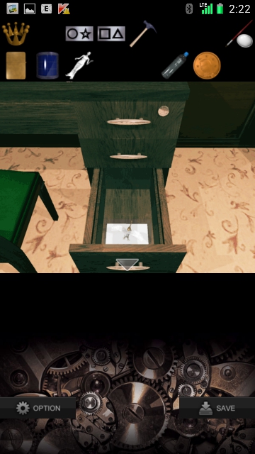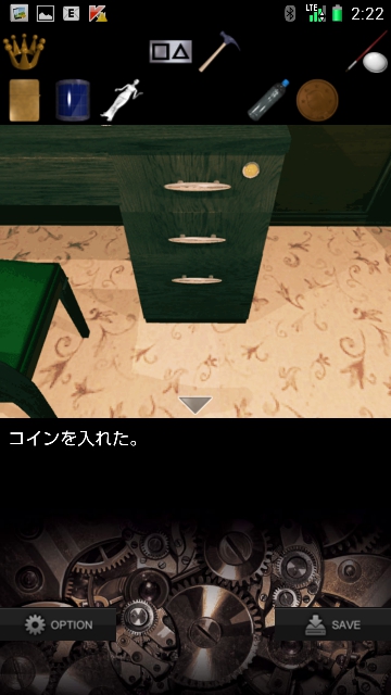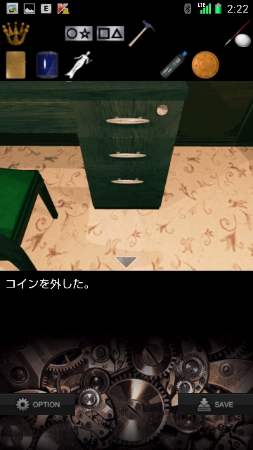 RECREATION(レクリエーション)攻略 その3|脱出ゲーム攻略 |Page2 脱出ゲーム 更新日時:2015年7月28日 11:19 AM ページタイトルとURLをコピーする 引き出しを調べると 右上にクボミがあるので コインをはめます。 引き出しを開いて 中のパネルを・・・ 手に入れます。 コインは後で使うので また手に入れます。 次は一番下の引き出しを開けます。 ガラスの中に何かあるので カナヅチを使って ガラスを割ります。 中から グリフォンを手に入れます。 さらに引き出しを調べると メモが出てきます。 上から 「右 X 左 X 左 X 」です。 ベッドの左下を調べます。 ページ: 1 2 3 4 前ページへ 次ページへ SQOOLのYouTubeチャンネル スポンサーリンク