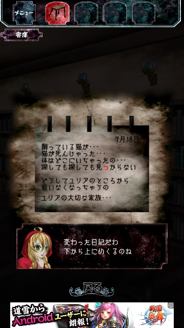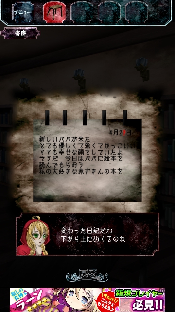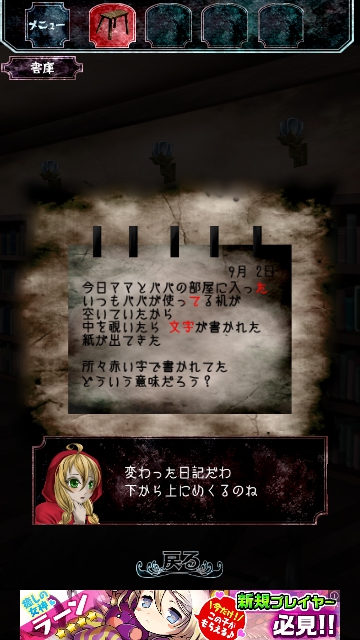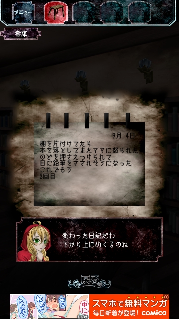 赤ずきん 廃墟洋館編 攻略 ステージ12 書庫 日記|脱出ゲーム攻略