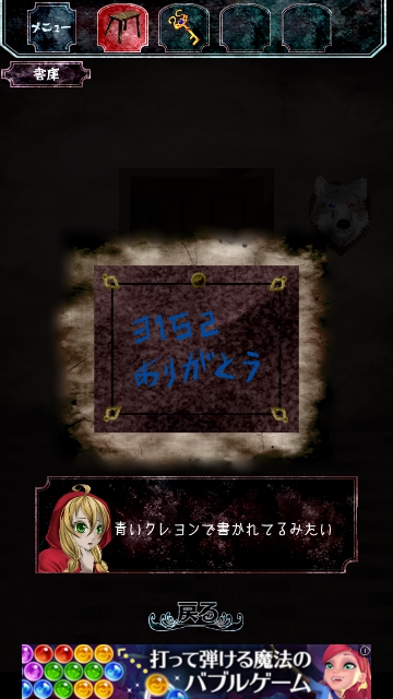脱出ゲーム 赤ずきん 廃墟洋館編 ステージ13 玄関