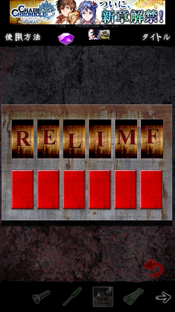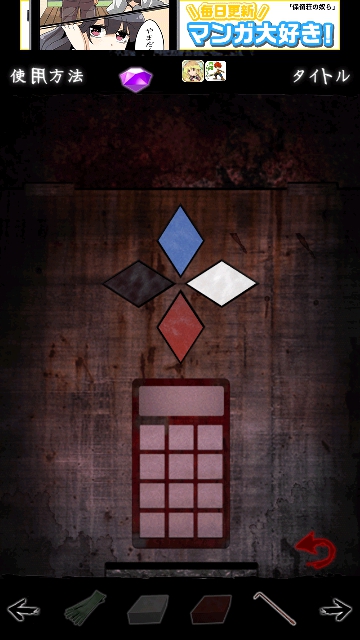 最恐!SCHOOL スクール 攻略 その5|脱出ゲーム攻略 |Page3 脱出ゲーム 更新日時:2015年7月22日 12:16 PM ページタイトルとURLをコピーする ハシゴの真下にある板を バールで外して調べます。 マークがあります。 写真の右下のマークと同じ色に変えます。 入力できるようになります。パスワードは ガイコツの標本でみた 1564 入力して 穴の中を見ると・・・ ガイコツの頭に RELIEF すぐに霊が襲ってきます。 画面連打で逃げます。 RELIEF これをパネルに入力し直すと ( 画面の右2番目はEです) すると 霊が叫びをあげて 光になり消えていきます。 ページ: 1 2 3 4 前ページへ 次ページへ SQOOLのYouTubeチャンネル スポンサーリンク