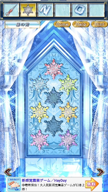 雪の女王と氷の城 ~童話脱出ゲーム~ ステージ9 攻略 |Page3 脱出ゲーム 更新日時:2015年7月22日 12:16 PM ページタイトルとURLをコピーする 左の悪魔には 「C」のブロックをはめます。 右の天使には Eのブロックをはめて 中央の女神の 台座を調べると 開いて 雪の結晶が手にはいります。 扉の前で雪の結晶を使って ステージクリアです。 脱出ゲーム 雪の女王と氷の城 ~童話脱出ゲーム~ 攻略記事一覧 ページ: 1 2 3 前ページへ SQOOLのYouTubeチャンネル スポンサーリンク